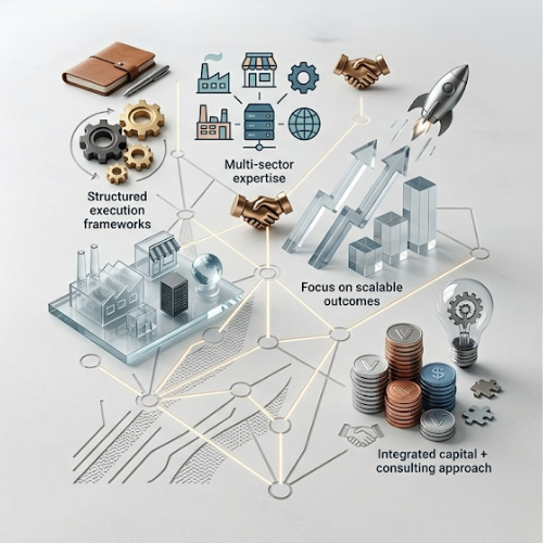 Transforming SMEs, enabling industrial efficiency, and building scalable ventures across sectors.